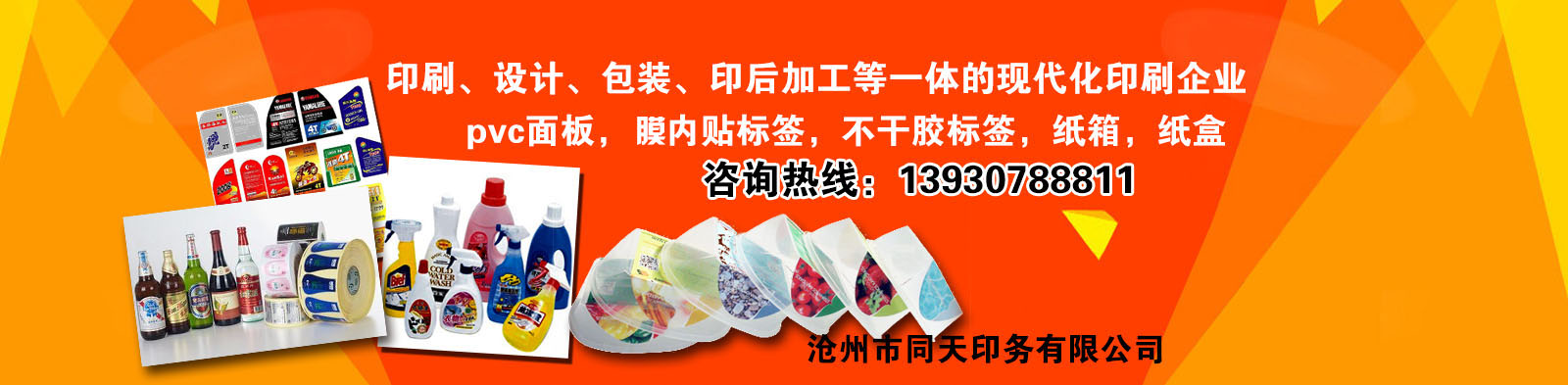 沧州市同天印务有限公司是集印刷、设计、包装、印后加工等一体的现代化印刷企业。我公司成立于2002年,拥有世界先进印刷设备,专业生产加工吸塑纸卡,pvc面板,膜内贴标签,不干胶标签,纸箱,纸盒,防伪标签等。公司产品远销海外,亚洲(日本、马来西亚、新加坡、印度尼西亚)欧洲(乌克兰、德国)大洋洲(新西兰)北美洲(加拿大、美国、墨西哥)同天以其精美的印品和完美的售后服务在业界赢得较高的知名度。我公司尊崇“踏实、拼搏、责任”的企业精神,并以诚信、共赢、开创经营理念,创造良好的企业环境,以全新的管理模式,完善的技术,周到的服务,卓越的品质为生存根本,我们始终坚持用户至上 用心服务于客户,坚持用自己的服务去打动客户?;队鹘缗笥演傲傥夜静喂?、指导和业务洽谈......
